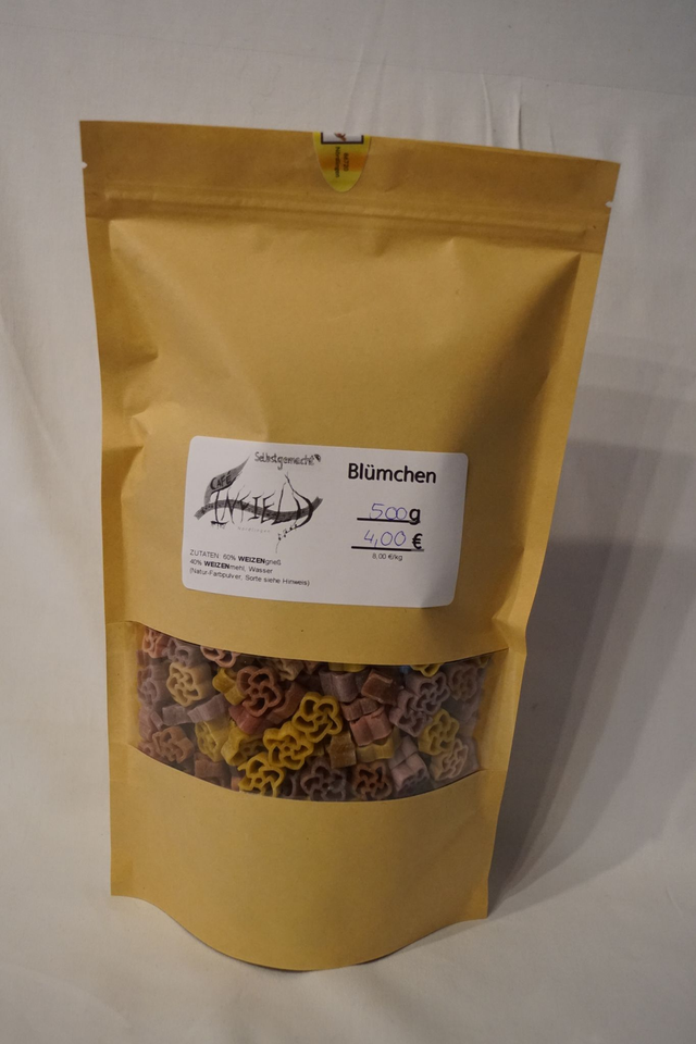 Hausgemachte Nudeln in Blümchen-Form.