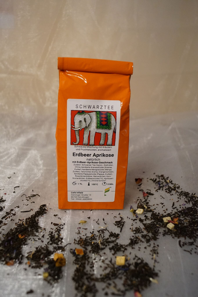 Schwarztee mit Erdbeer-Aprikose-Geschmack.