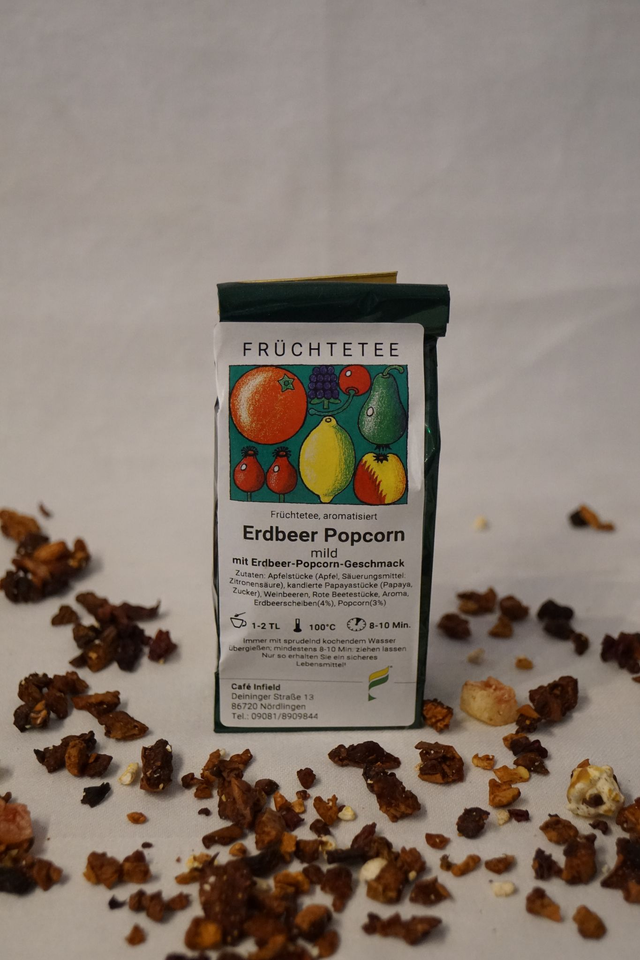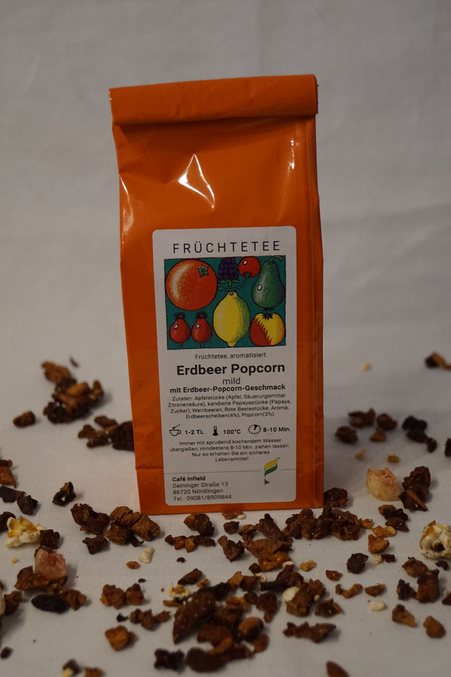 Früchtetee, mit Erdbeer-Popcorn-Geschmack