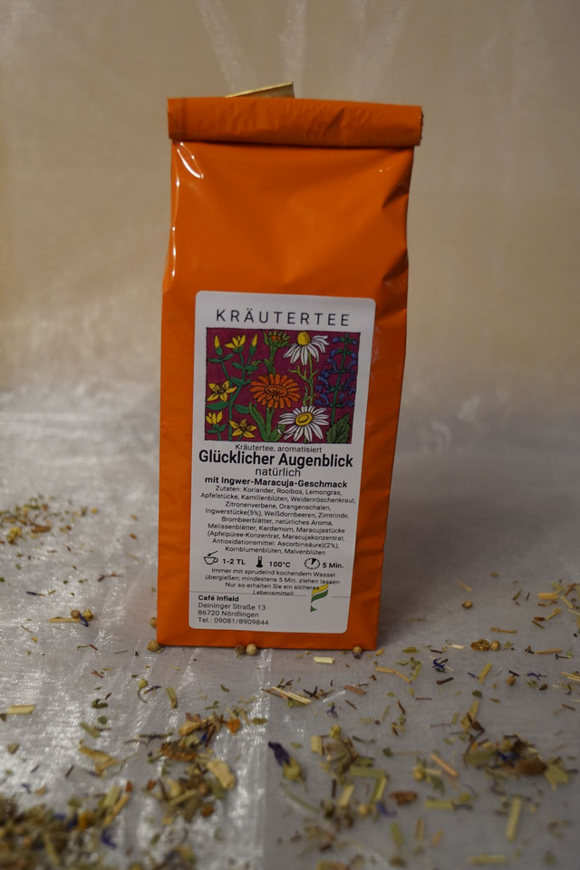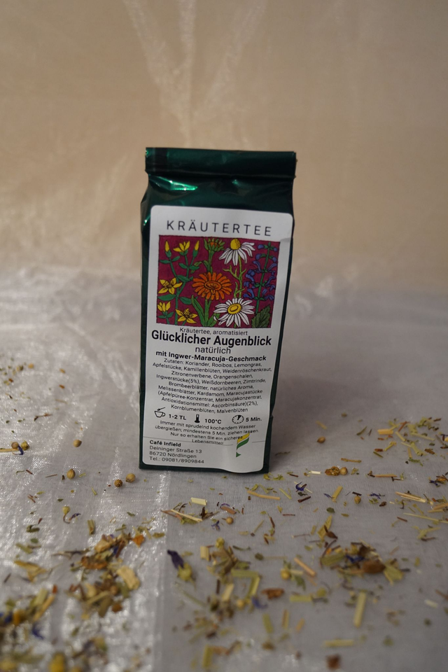 Kräutertee mit Ingwer-Maracuja-Geschmack.