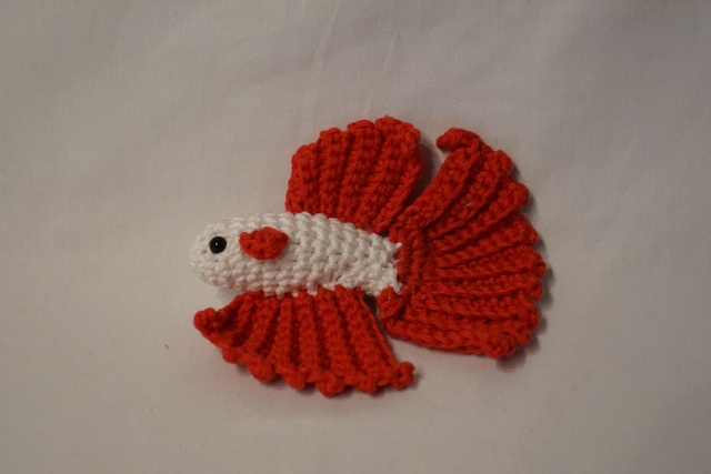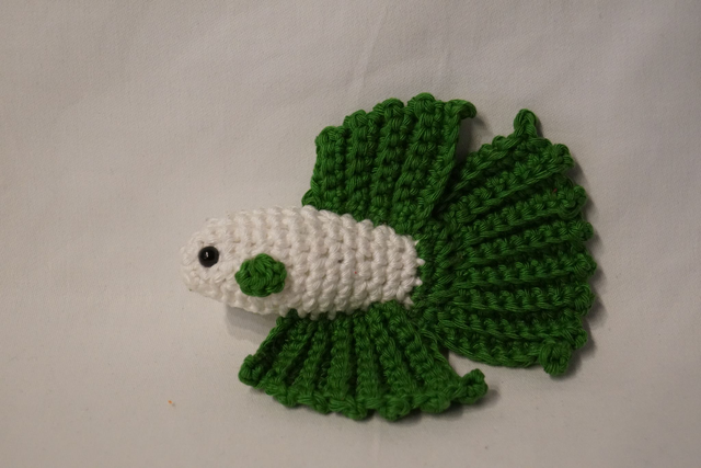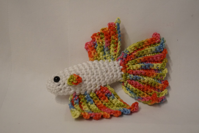 Gehäkelter Kampffisch mit Kunststoff-Sicherheitsaugen, verschiedene Farben.