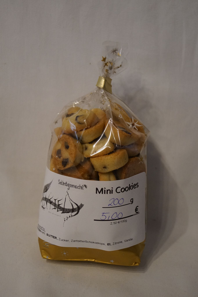 Mini Cookies aus Mürbeteig, mit Schokodrops.
