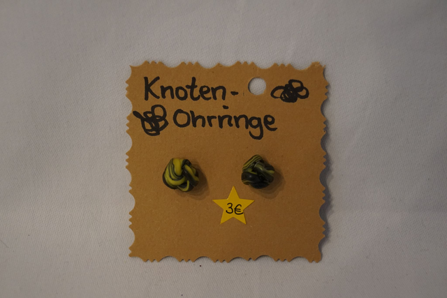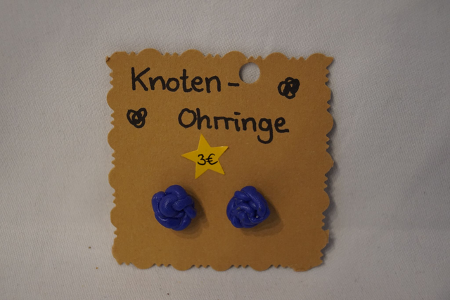 Handgemachte Ohrringe in Knotenform aus Fimo.