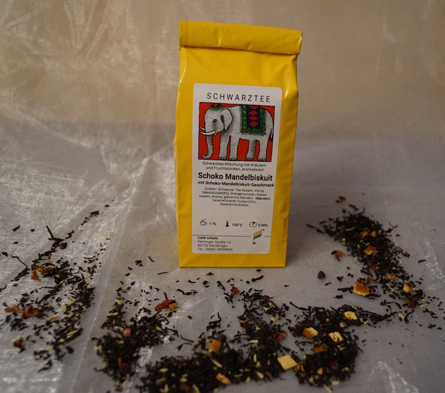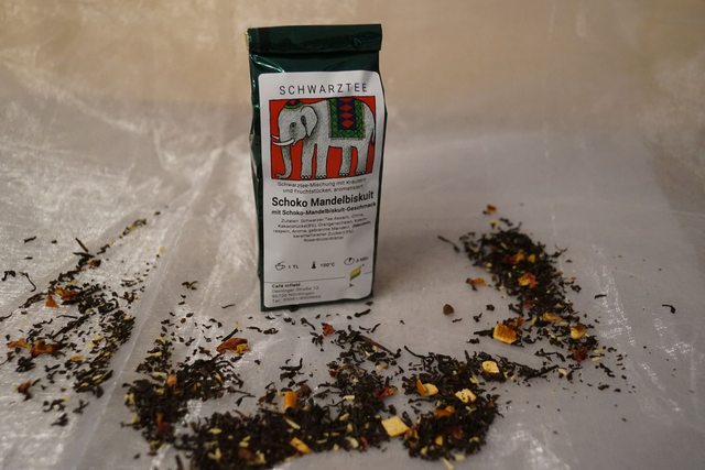 Schwarztee mit Schoko-Mandelbiskuit-Geschmack.