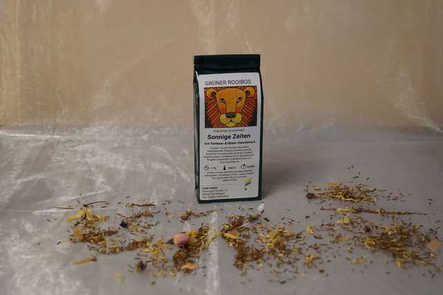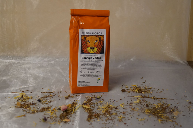Grüner Rooibos mit Himbeer-Erdbeer-Geschmack.