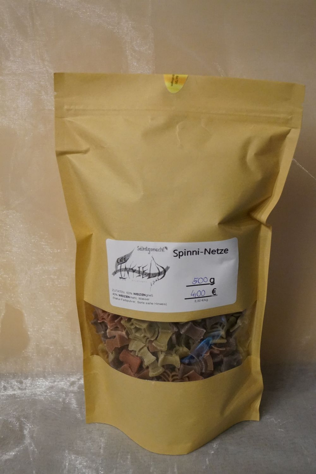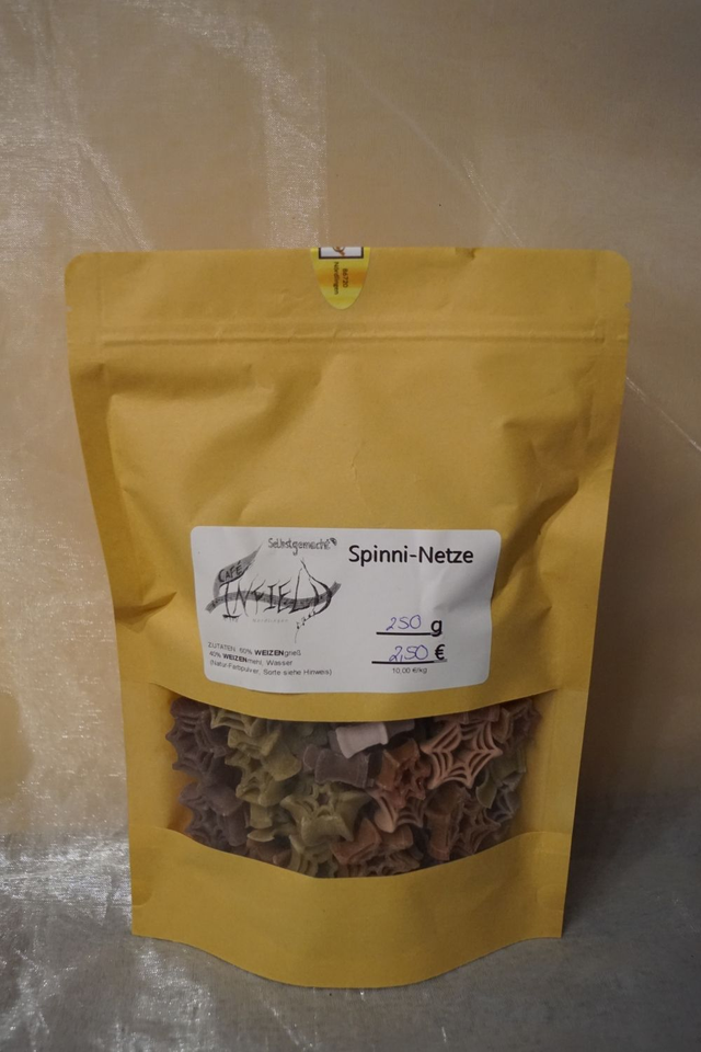 Hausgemachte Nudeln in Spinnennetz-Form.