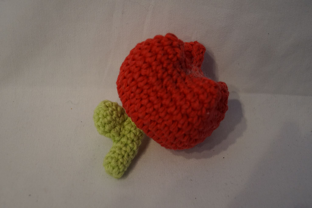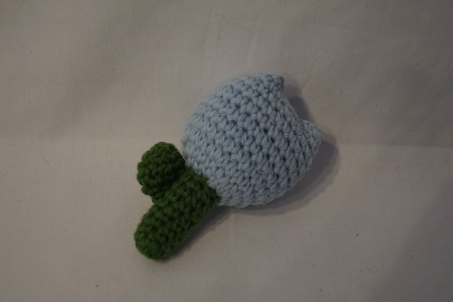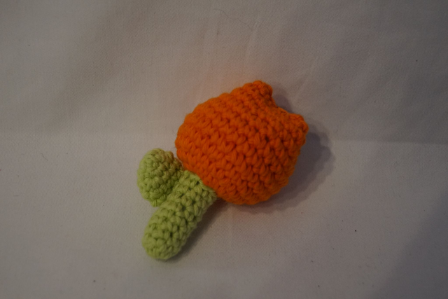Die Tulpe besteht aus einem Stiel und einem Blütenelement, beides mit Füllwatte gefüllt.