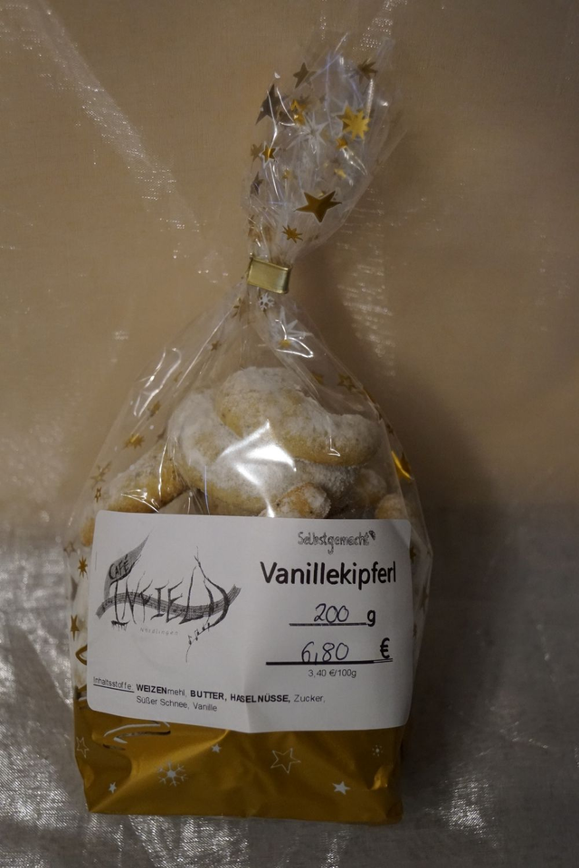 Alle Vanillekipferl sind handgebogen, und demnach Unikate. Abweichungen in Farbe, Form oder Größe sind möglich.